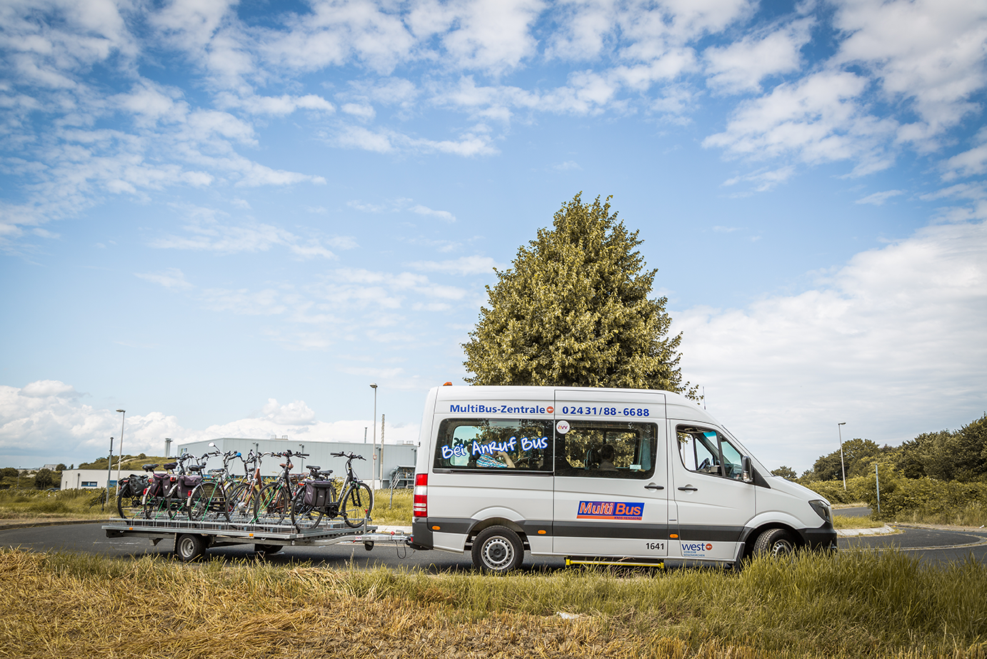 In allen west-Bussen, die mit einem Fahrradsymbol gekennzeichnet sind, können montags bis freitags ab 19:00 Uhr, samstags ab 15:00 Uhr sowie an Sonntagen und gesetzlichen Feiertagen ganztägig Fahrräder mitgenommen werden.